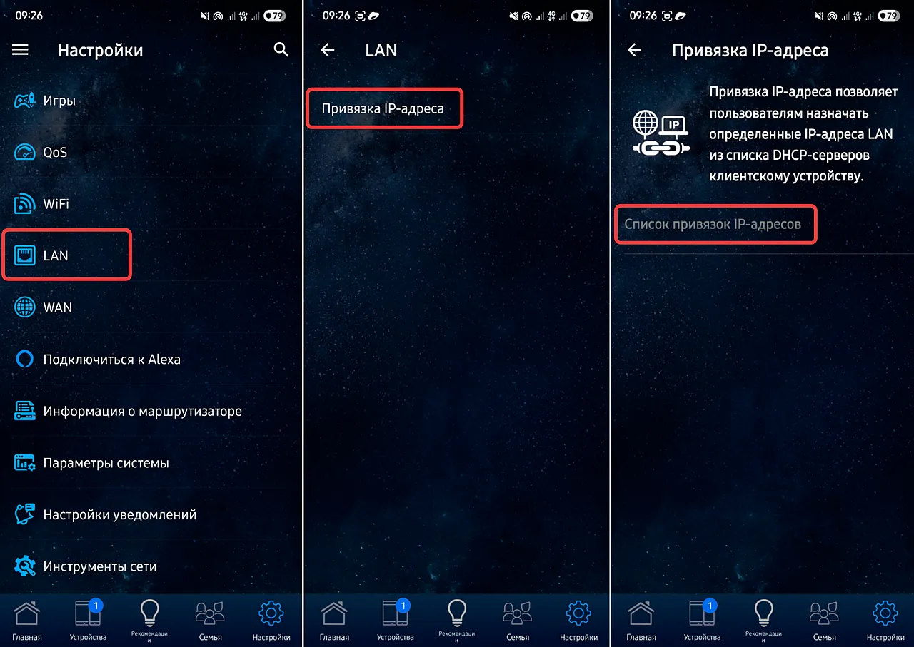 Чтобы зарезервировать IP‑адрес на маршрутизаторе TP‑Link Deco, вы также можете воспользоваться мобильным приложением Deco — процедура выполняется в несколько простых шагов: